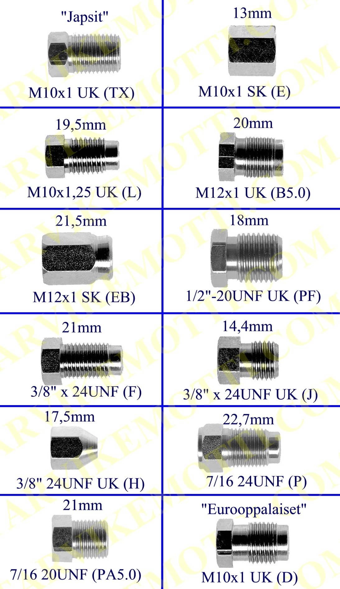 5mm jarruputkelle, valitse liitin. (uk = ulkokierre ja sk = sisäkierre)