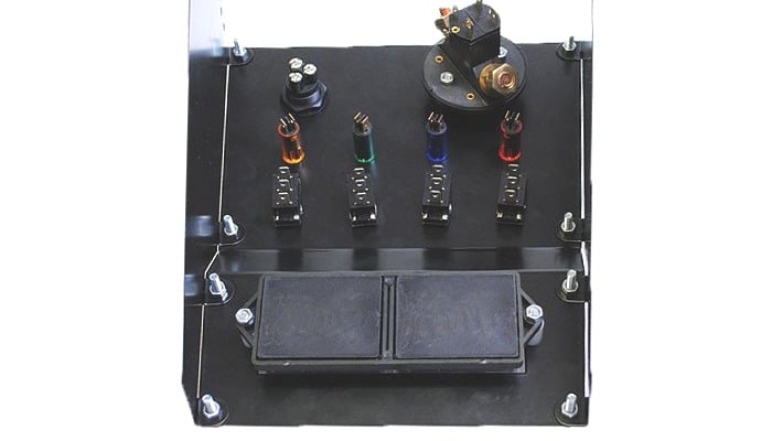 Katkaisin / sulake paneeli keskikonsoliin, materiaali mustaa jauhemaalattua terästä, leveys 230/190mm ja korkeus 290mm.