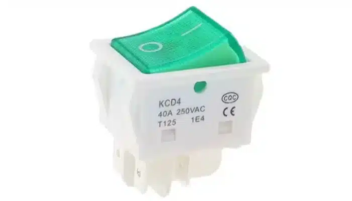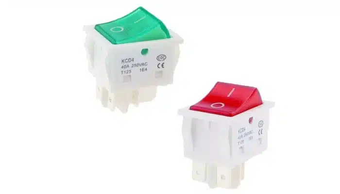 Keinukytkin 22mm x30mm aukkoon merkkivalolla 250V AC ON-OFF toiminnolla.