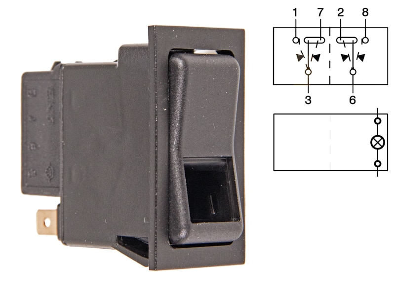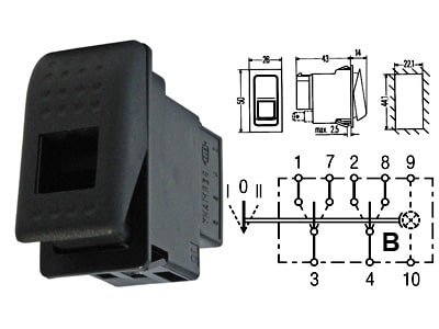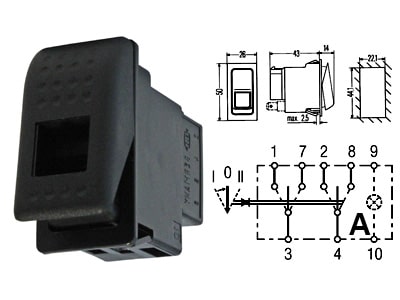 Keinukytkin, joka sopii 22x44mm asennusaukkoon, näissä ei ole mukana symboleita, ne löytyvät tästä.