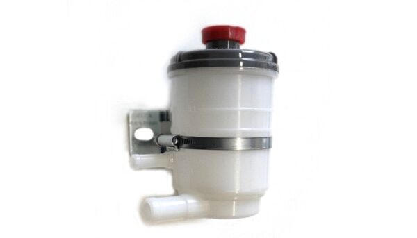 Valkoinen muovinen ohjaustehostimen öljysäiliö.