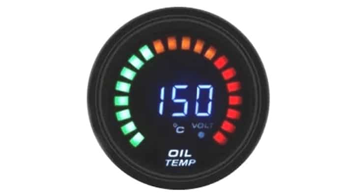 Öljynlämpömittari musta 52mm, mukana 1/8″ kierteellä oleva anturi, mittari on ns smoke sarjaa, eli näyttö täysin musta ennen virran kytkemistä