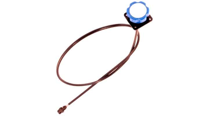 Alumiininen jarrubalancen säätönuppi kojetauluun, josta lähtee 95cm vaijeri pedalboxiin tasapainon säätämiseksi, kierre 7/16″Unf.