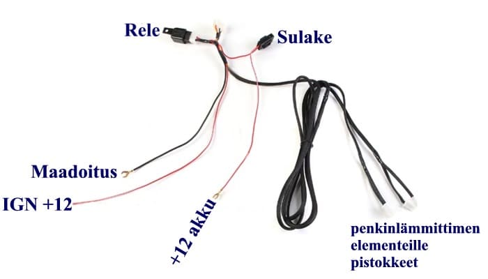 • releeltä 2,3m johdot penkilämmittimien elementeille