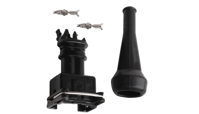 Pistoke 2-napainen suojakumilla, sopii esim webaston polttoainepumppuun ja kiertovesipumpuun.