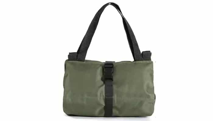 Kätevä työkalaukku auton peräkonttiin, mukaan mahtuu tärkeimmät työkalut, vihreää kangasta.