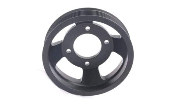 Vesipumpun hihnapyörä, BMW M52TU/M54. CNC koneistettu billet alumiinipyörä 6061-T6, mustaksi eloksoitu.
